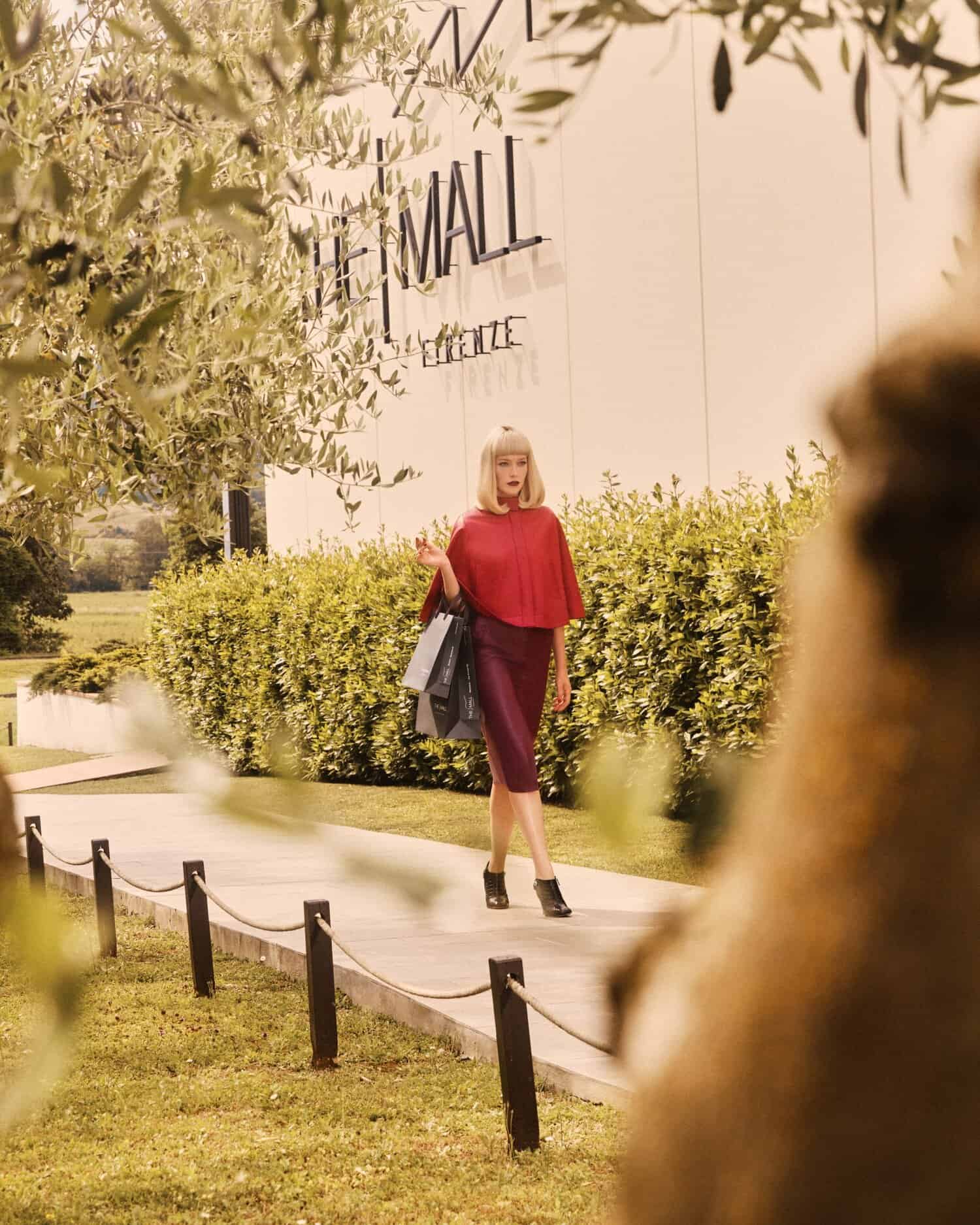 Más tarde esa mañana, fui en coche al centro comercial The Mall Firenze para dar rienda suelta a una tentación de compras sin igual. El centro comercial está situado en un entorno de colinas toscanas, un ambiente paradójicamente sereno dada la frenética actividad que rodea las tiendas de las marcas más codiciadas del mundo. Gucci, Saint Laurent, Bottega Veneta, Loro Piana y Fendi bordean los pasillos al aire libre. Afortunadamente, se asemeja más a un pueblo de lujo que a un outlet. Pasé de boutique en boutique e hice una única parada para almorzar rápidamente en ToscaNino Bottega & Restaurant, donde, una vez más, disfruté de una generosa ración de pasta y una copa de vino blanco mientras mis bolsas de la compra eran recogidas discretamente en la recepción. Al salir, mi tarjeta de crédito ya había sufrido las consecuencias, aunque me convencí de que todo era por la investigación. ¡Al fin y al cabo, soy editora y esto era trabajo!
