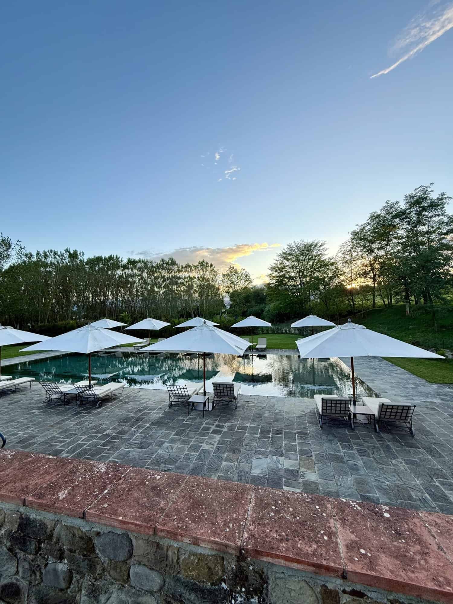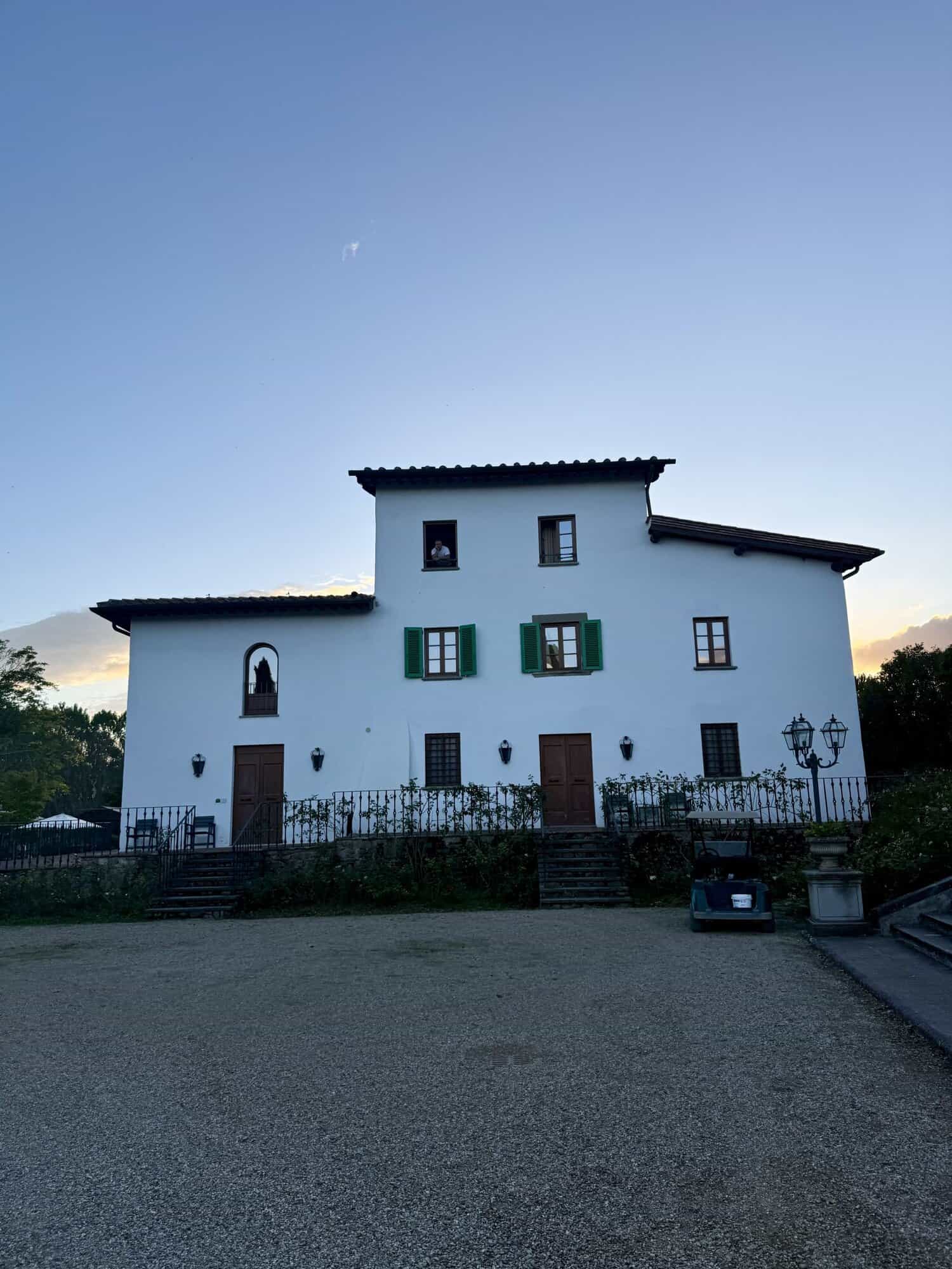Esa tarde partí de Florencia hacia la campiña toscana, con destino a Viesca Toscana, una de las fincas privadas de la familia Ferragamo y hermana de Il Borro. Antigua residencia renacentista, la finca fue adquirida por Salvatore y Wanda Ferragamo en 1952 como refugio de fin de semana para la familia. Hoy, ha sido cuidadosamente restaurada y convertida en un conjunto de elegantes villas y suites, cada una irradiando una belleza serena y atemporal. Llegué justo antes del atardecer, cuando la luz se suavizaba sobre las onduladas colinas y se posaba delicadamente sobre el perímetro bordeado de cipreses. Una tenue bruma se extendía por el valle, impregnando el paisaje de un romanticismo particular de esta región. El dormitorio de mi suite tenía vistas a los campos toscanos, enmarcado por una ventana arqueada que parecía diseñada especialmente para este paisaje. En su interior me esperaban esos gestos personales que definen la hospitalidad: una nota manuscrita de la propia Vittoria Ferragamo y una botella de vino Il Borro.